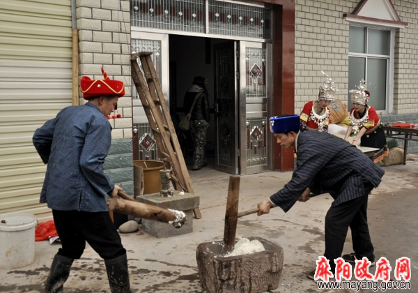 忙年 臘月二十左右,麻陽苗鄉處處聞豬嚎叫,村村飄酒香,家家打糍粑、做印盒粑、醃製臘肉、添置過年物品,老少同忙年。二十三送灶王菩薩上天,打堂黴、清掃居室內外。二十八張掛春聯、年畫。