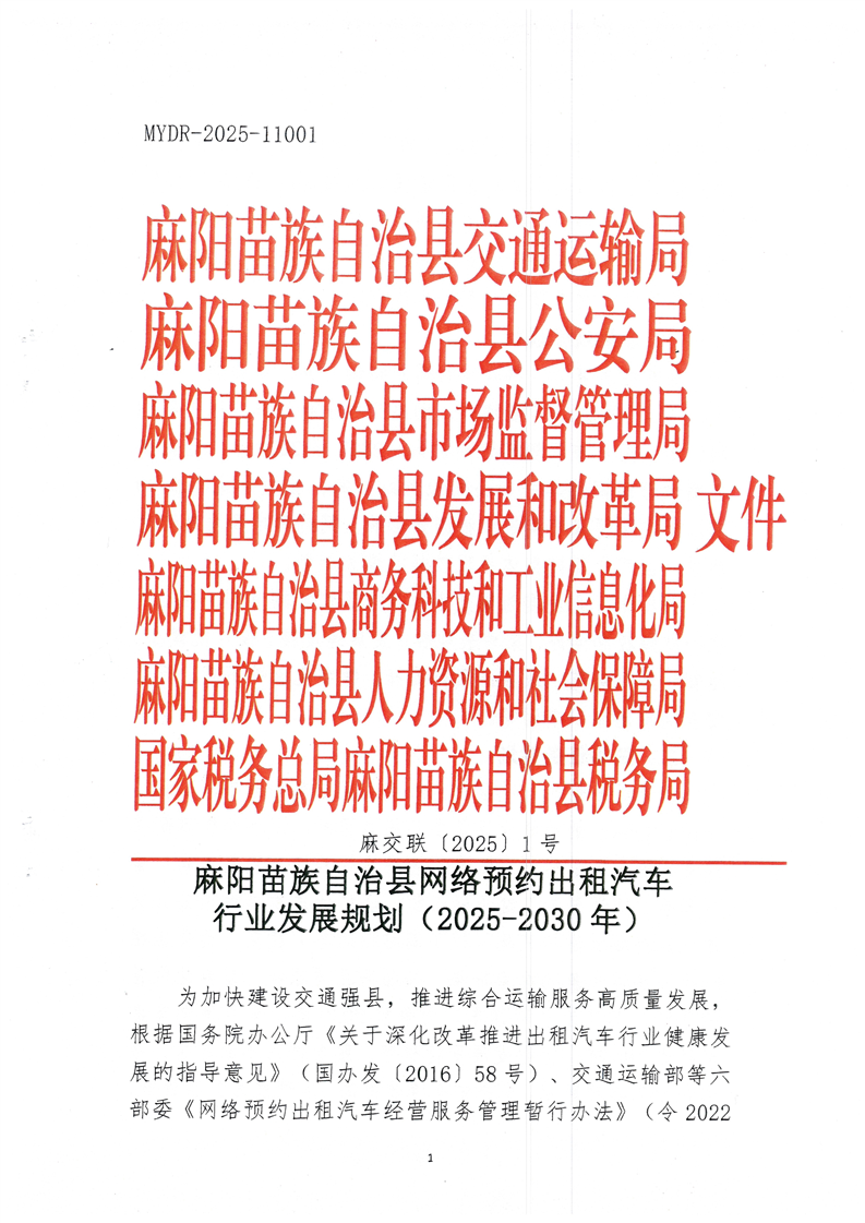 • 關於《麻陽苗族自治縣網絡預約出租汽車行業發展規劃(2025-2030年)》的解讀
