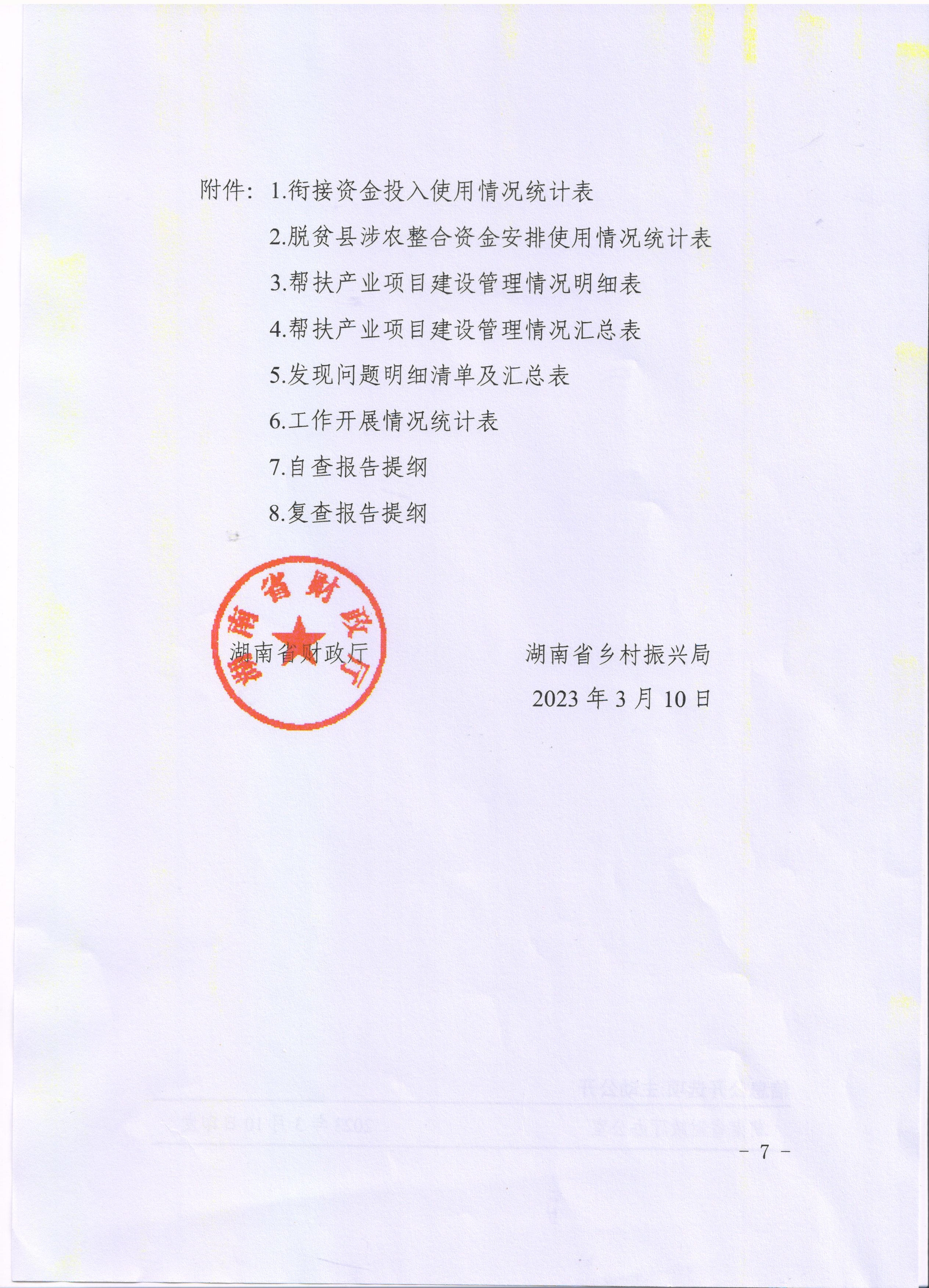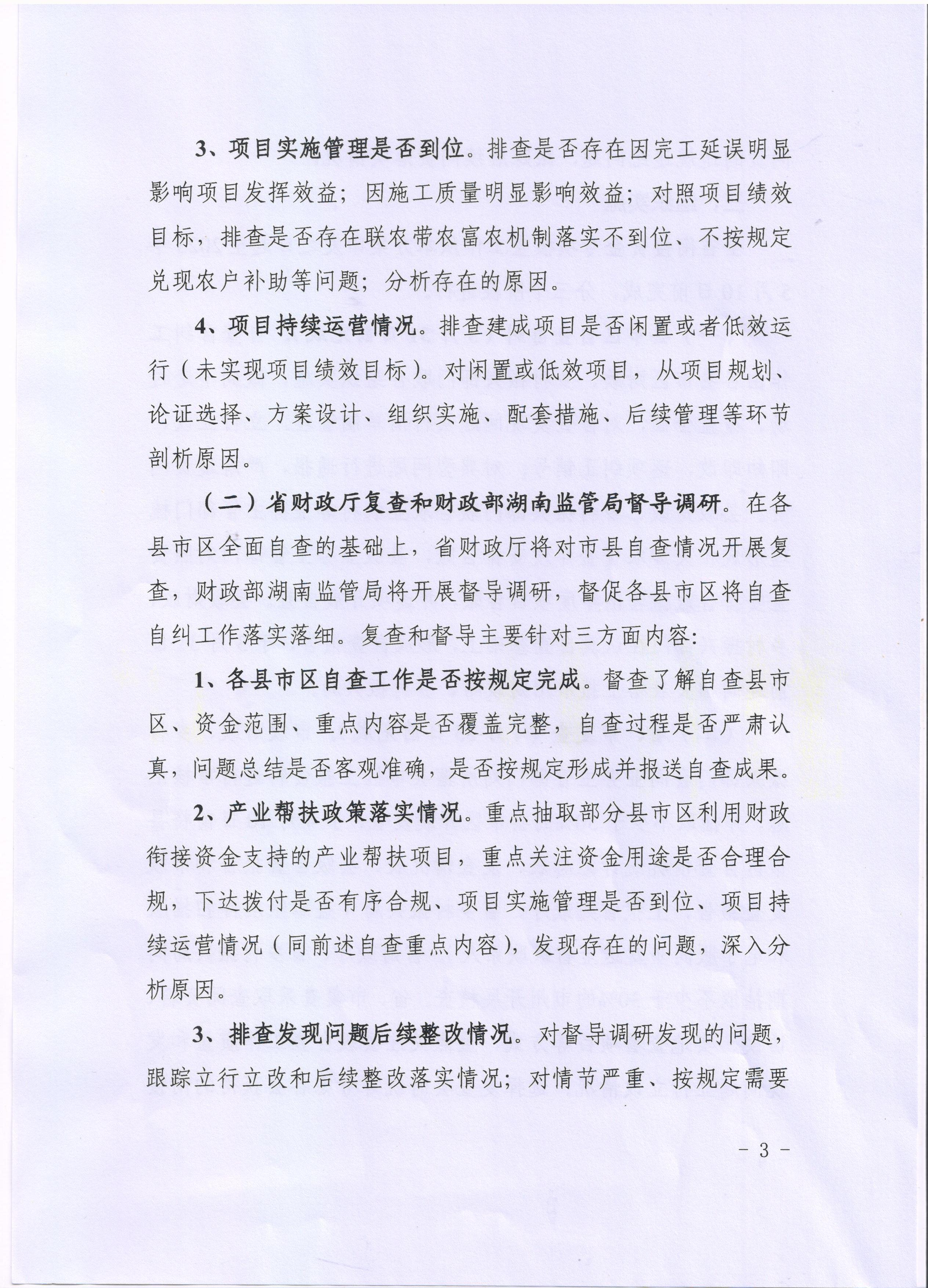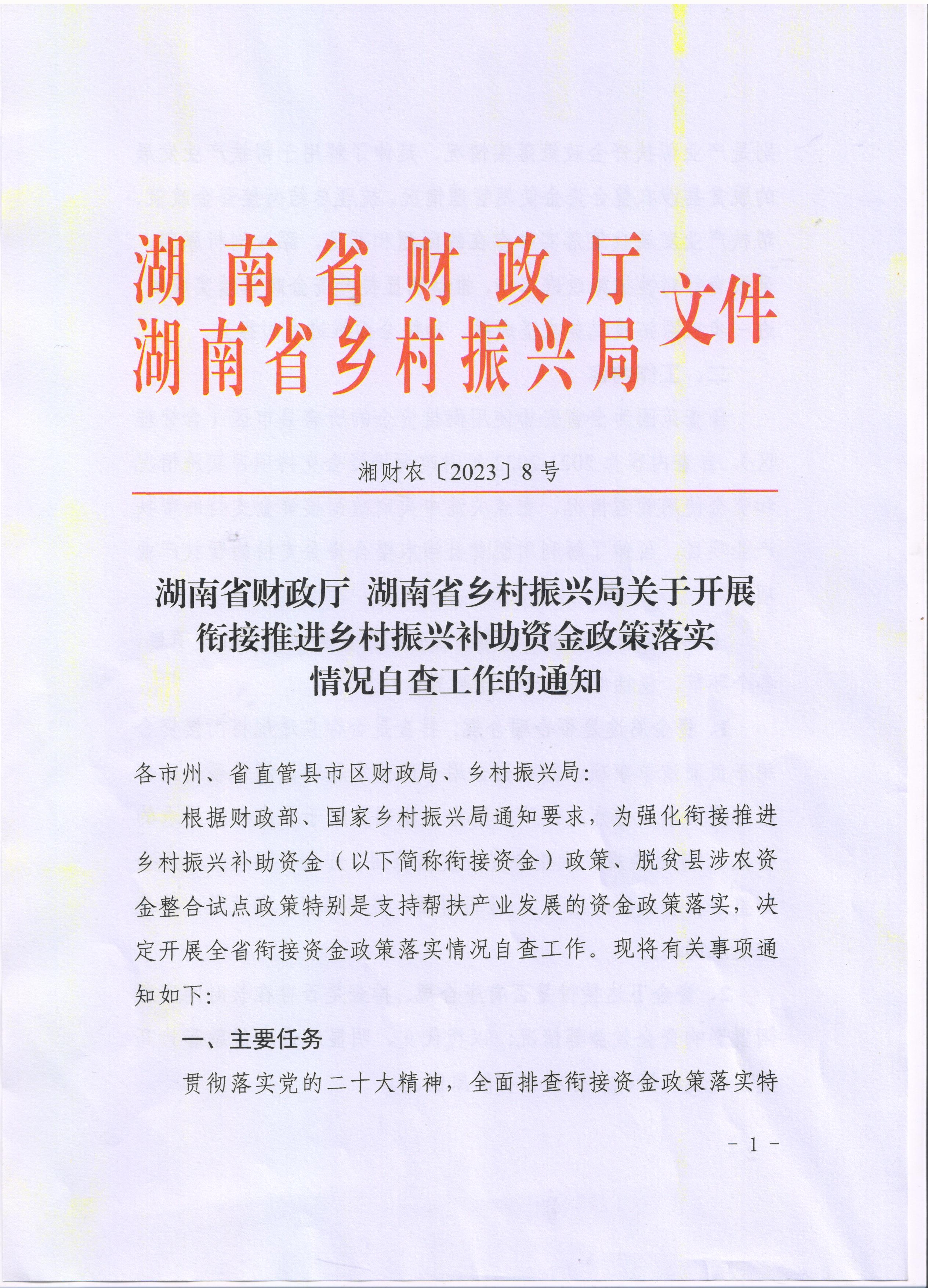 湖南省財政廳湖南省鄉村振興局關於開展銜接推進鄉村振興補助資金政策落實情況自查工作的通知