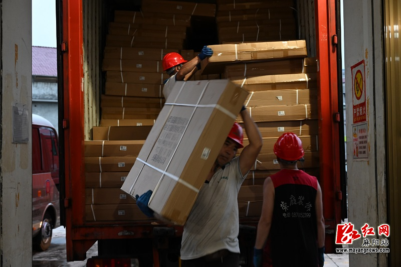 6月23日,在麻陽苗族自治縣應急救災物資儲備倉庫,各鄉鎮的運輸車輛依次排隊領取物資。倉庫負責人仔細核對數量,按需分配。鄉鎮幹部們爭分奪秒,領到物資後立即組織裝車。礦泉水、方便麵等生活物資被迅速搬運上車,折疊床、棉被和空調被等救災物品也一摞摞傳遞至車廂內,現場繁忙而有序。