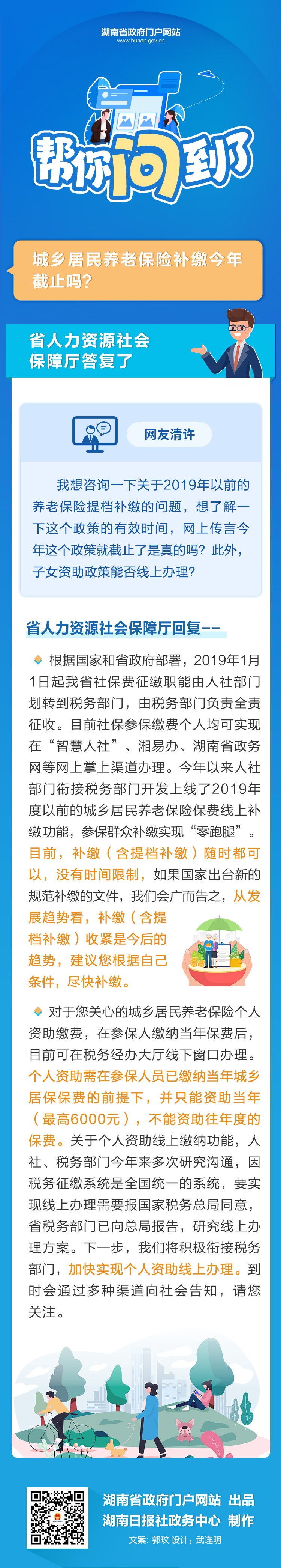城鄉居民養老保險補繳今年截止嗎?幫你問到了! 麻陽苗族自治縣人民政府 https://www.zwgsc.com 發布時間: 2025-12-10 11:01 【字體:大 小】 分享到 來源:湖南省政府門戶網站 作者: