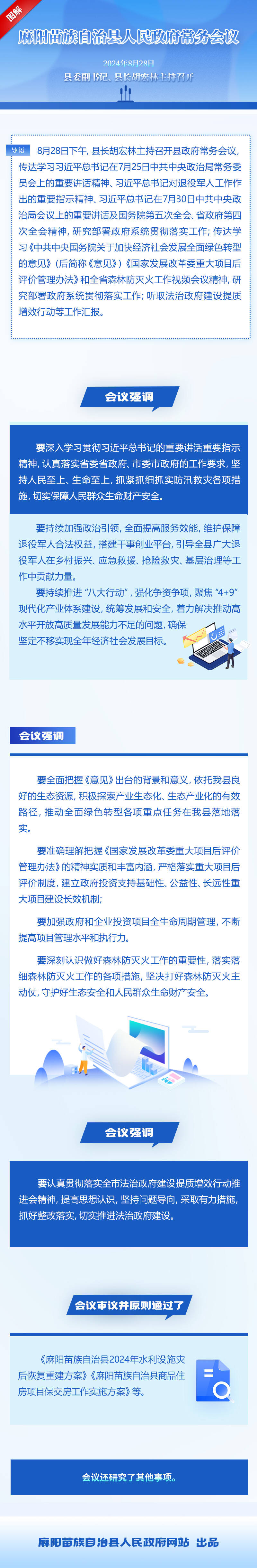 圖解:2024年8月28日麻陽苗族自治縣人民政府常務會議