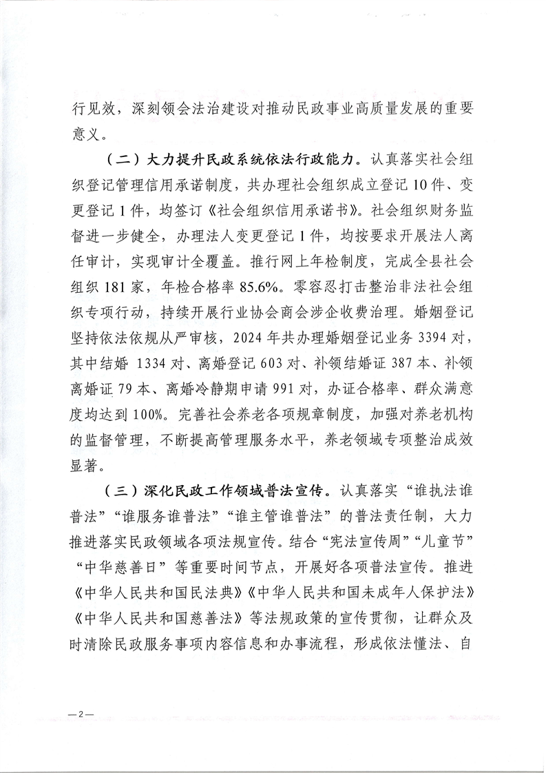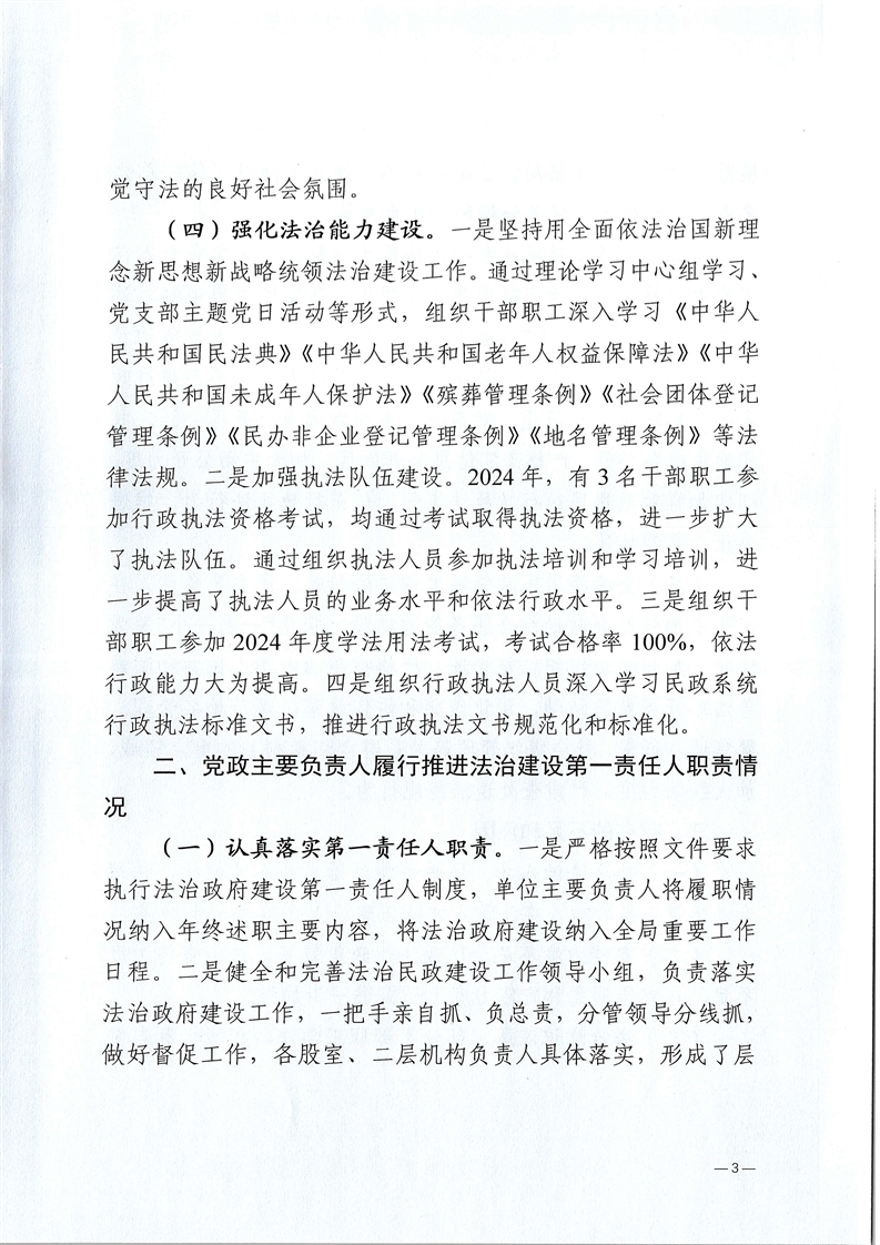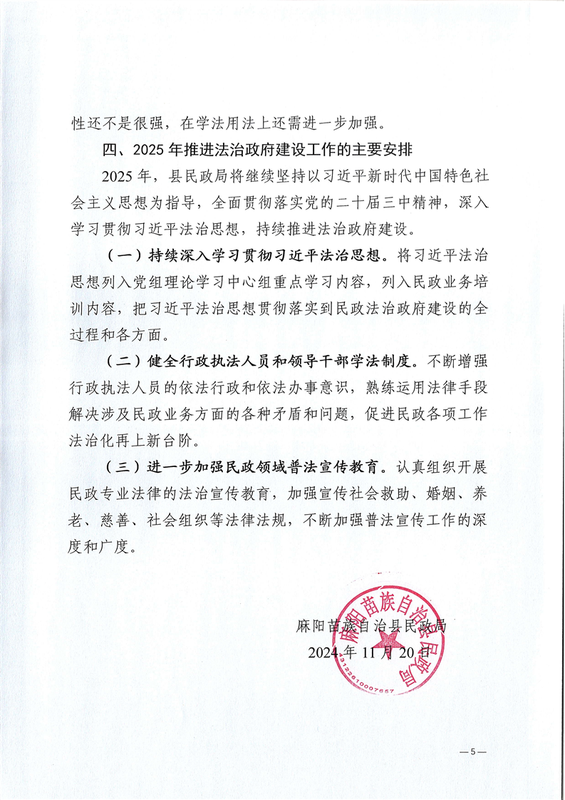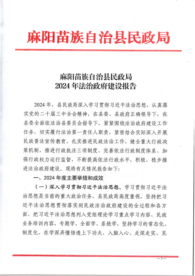 麻陽苗族自治縣民政局2024年法治政府建設報告