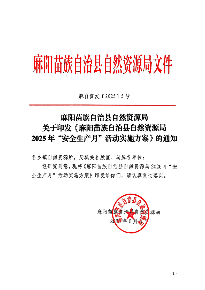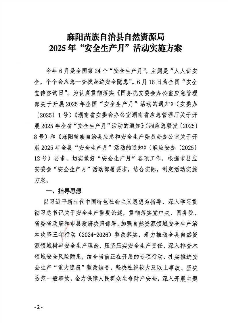 麻陽苗族自治縣自然資源局2025年“安全生產月”活動實施方案 麻陽苗族自治縣人民政府 https://www.zwgsc.com 發布時間: 2025-06-09 09:07 【字體:大 小】 分享到 來源:麻陽縣自然資源局 作者: