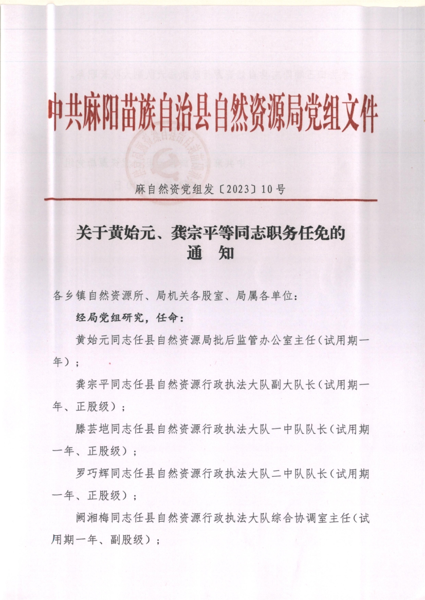 關於黃始元、龔宗平等同誌職務任免的通知