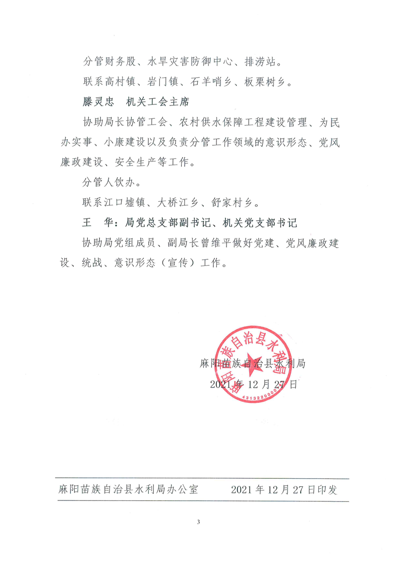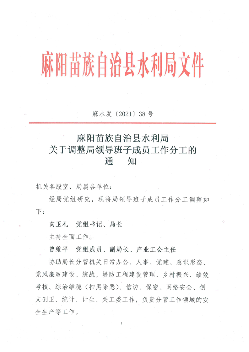 關於調整局領導班子成員分工的通知