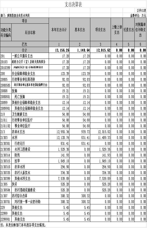 5、農林水213(行政運行2130301,水利工程建設2130305,防汛2130314,抗旱2130315,農田水利2130316,農村人畜飲水2130335,其他水利支出2130399,農村基礎設施建設2130504,對村級一事一議補助2130701)