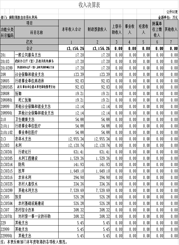 水利局位2019年部門決算匯總公開單位構成包括:麻陽苗族自治縣水利局本級。