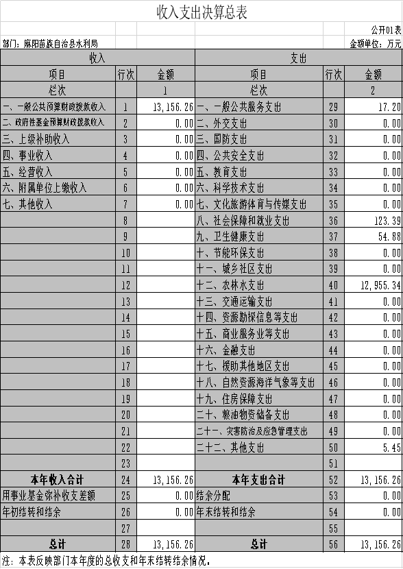 2019 年度收、支總計13156.26萬元。與2018年相比,增加1970.5萬元,增長17.62%,主要是因為本年項目增加。
