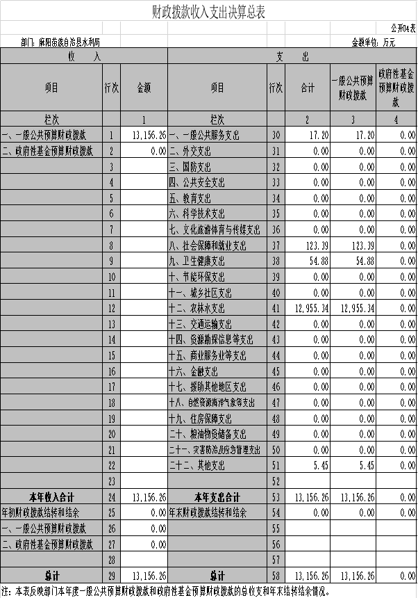 四、財政撥款收入支出決算總表