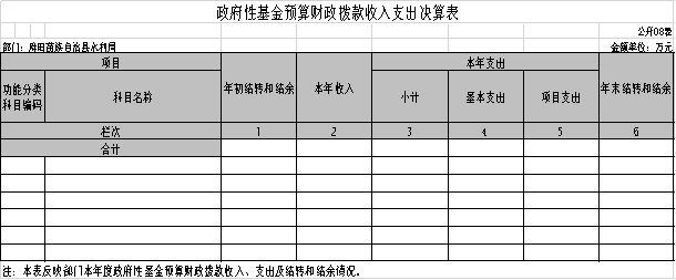 八、政府性基金預算財政撥款收入支出決算表