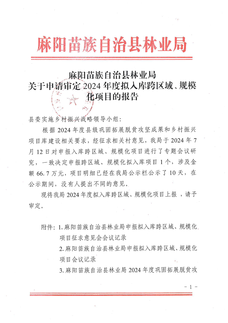 關於申請審定2024年度擬入庫跨區域、規模化項目的報告
