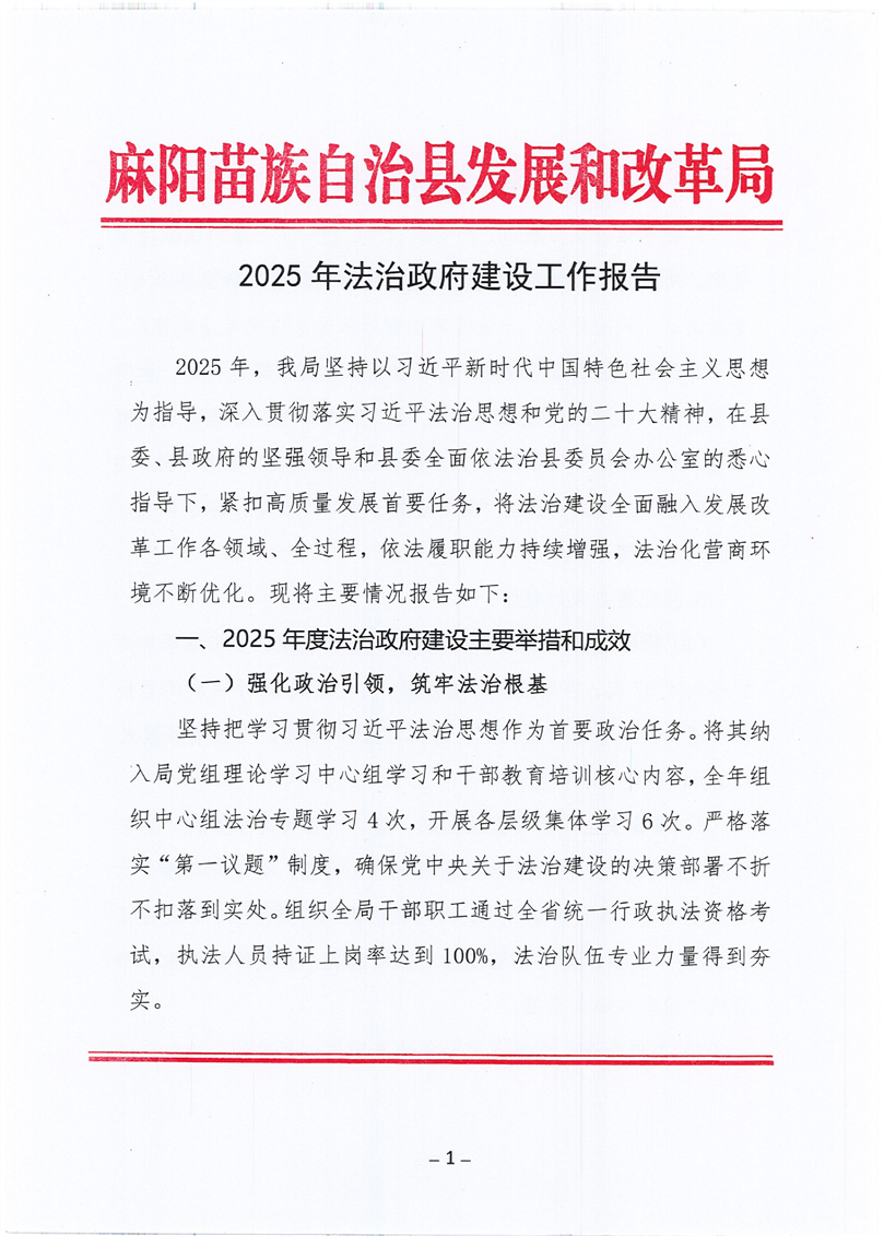麻陽苗族自治縣發展和改革局2025年法治政府建設工作報告 麻陽苗族自治縣人民政府 https://www.zwgsc.com 發布時間: 2026-01-09 11:52 【字體:大 小】 分享到 來源:麻陽縣發展和改革局 作者: