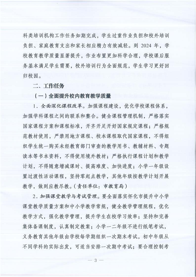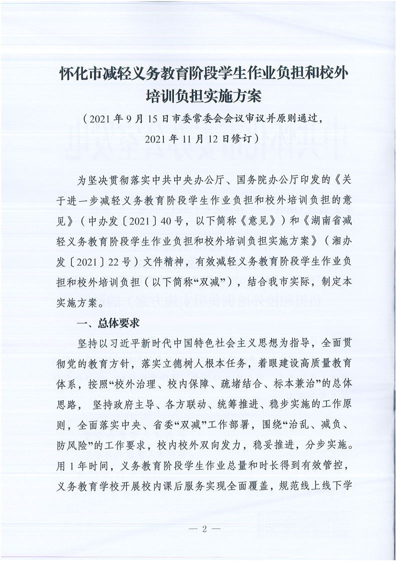 懷化市減輕義務教育階段學生作業負擔和校外培訓負擔實施方案 麻陽苗族自治縣人民政府 https://www.zwgsc.com 發布時間: 2021-11-28 09:46 【字體:大 小】 分享到 來源:懷化市教育局網站 作者:
