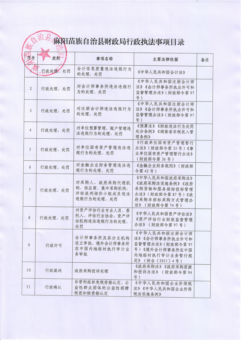 麻陽苗族自治縣財政局行政執法決定法製審核事項目錄 麻陽苗族自治縣人民政府 https://www.zwgsc.com 發布時間: 2025-06-09 15:12 【字體:大 小】 分享到 來源:麻陽縣財政局 作者: