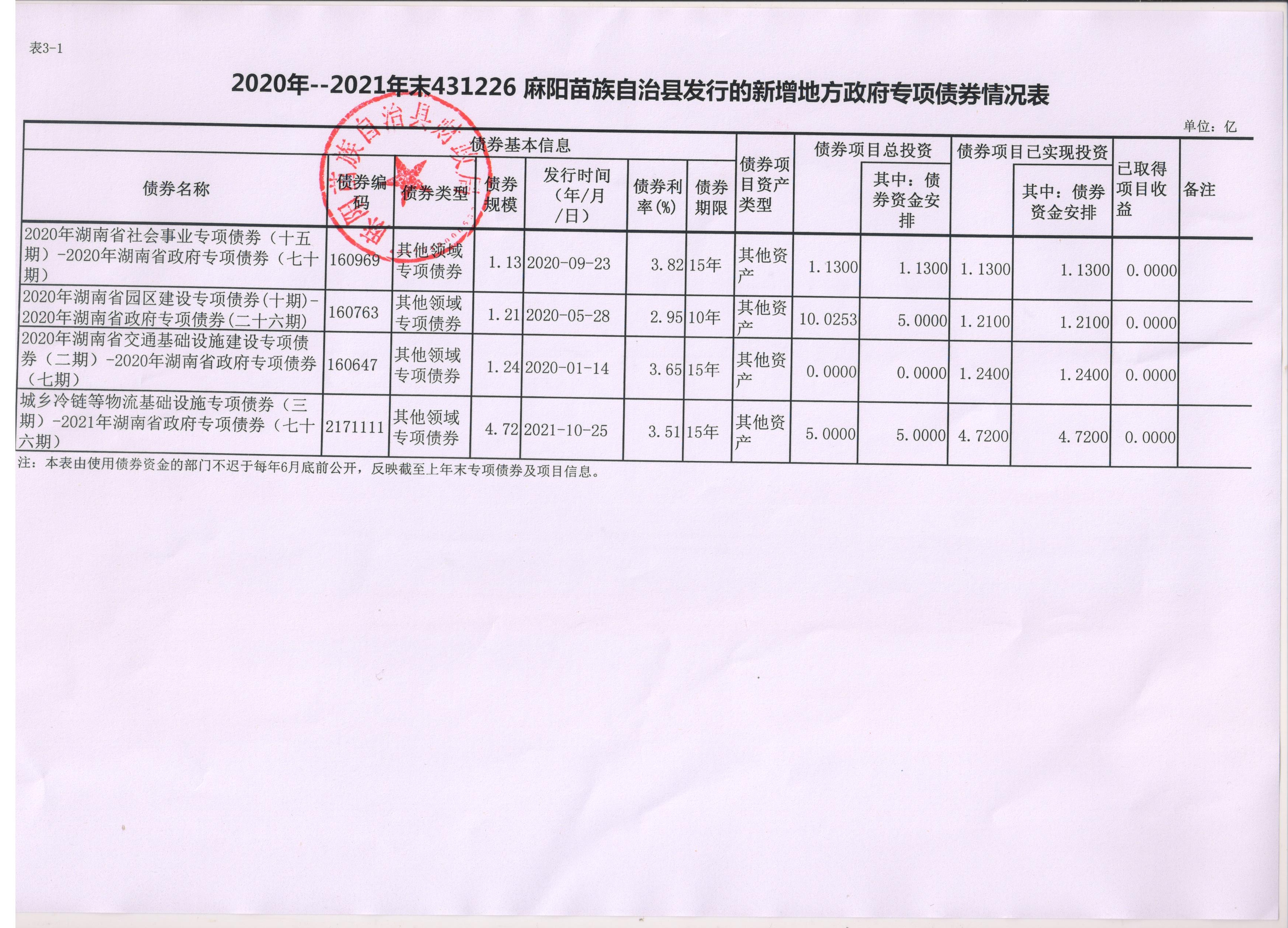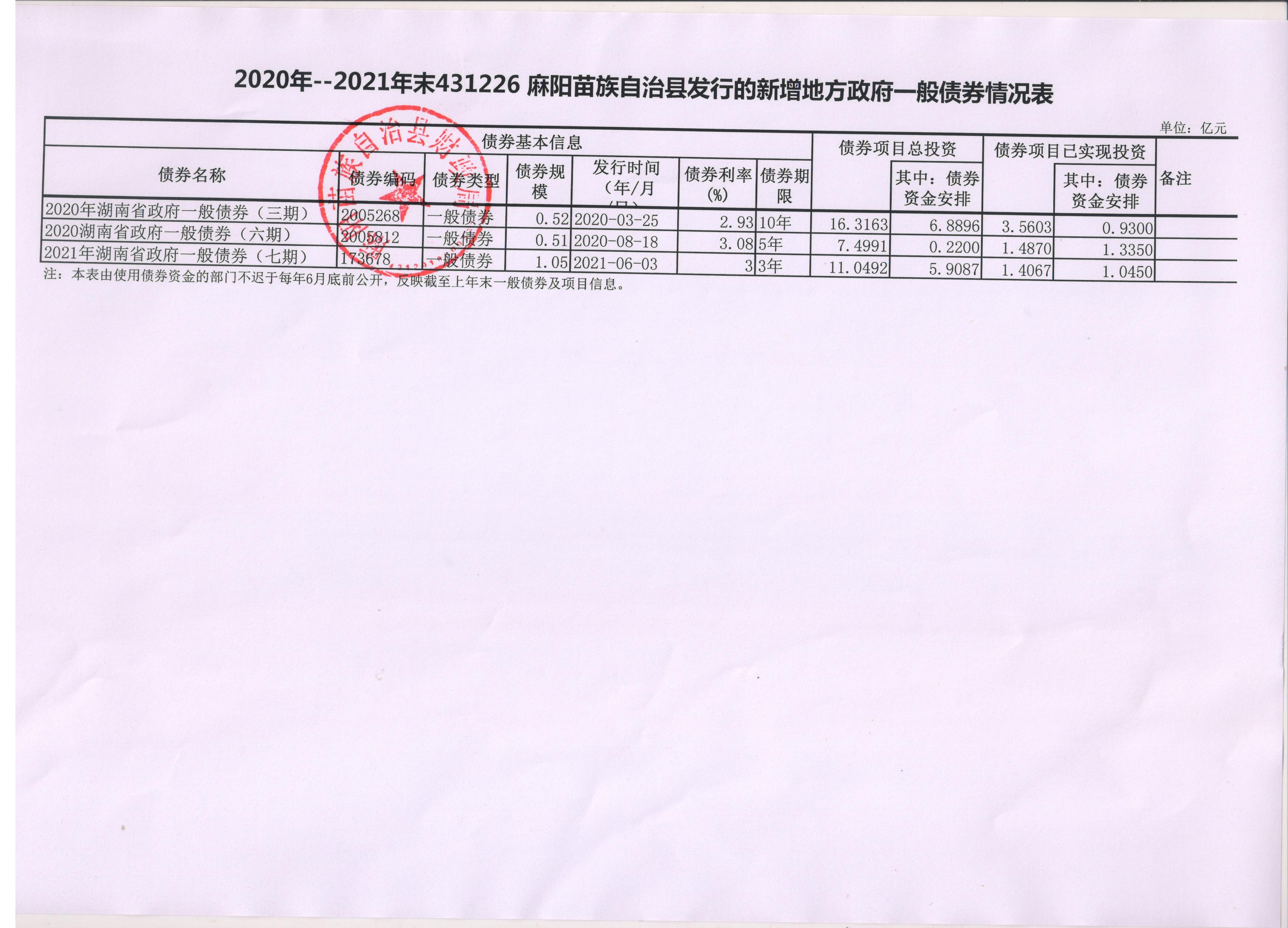 麻陽縣2020-2021年末政府債券存續期信息公開政府性債務綜合報告 麻陽苗族自治縣人民政府 https://www.zwgsc.com 發布時間: 2022-06-23 14:55 【字體:大 小】 (麻陽)債券存續期公開 分享到 來源:麻陽縣財政局 作者: