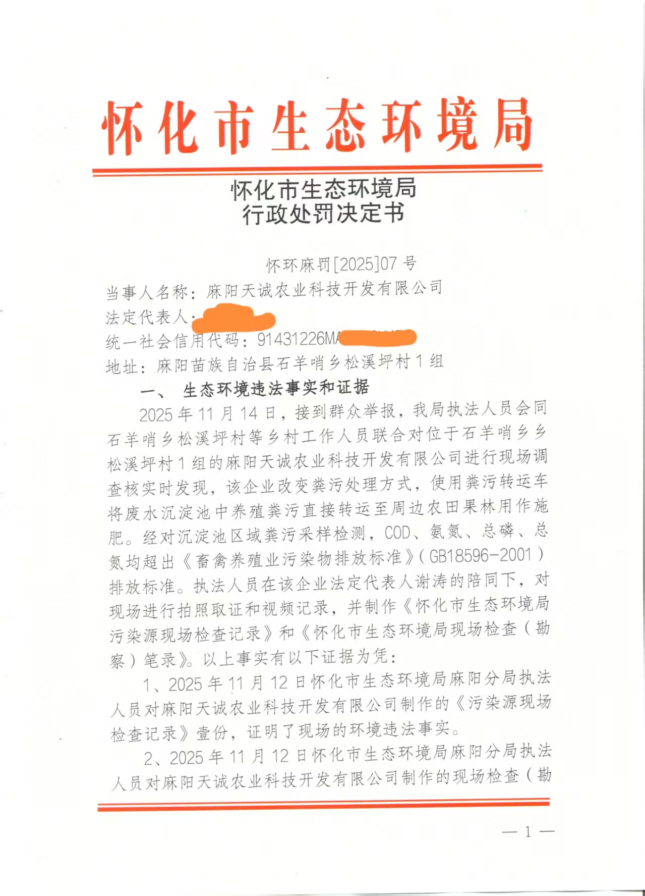 懷化市生態環境局行政處罰決定書 懷環麻罰〔2025〕07號 麻陽苗族自治縣人民政府 https://www.zwgsc.com 發布時間: 2025-12-26 14:53 【字體:大 小】 分享到 來源:市生態環境局麻陽分局 作者: