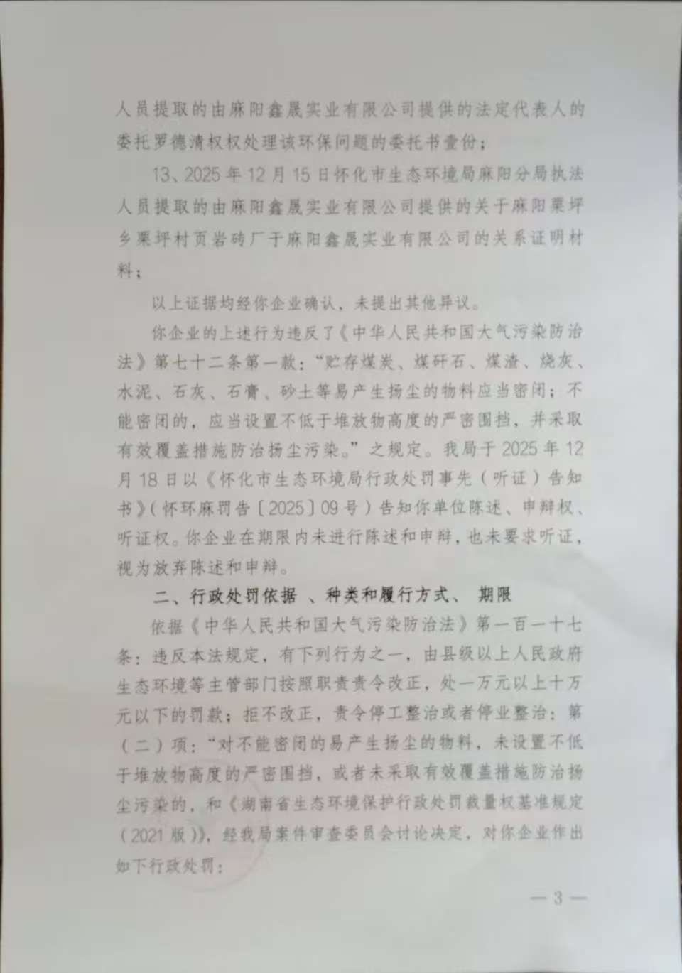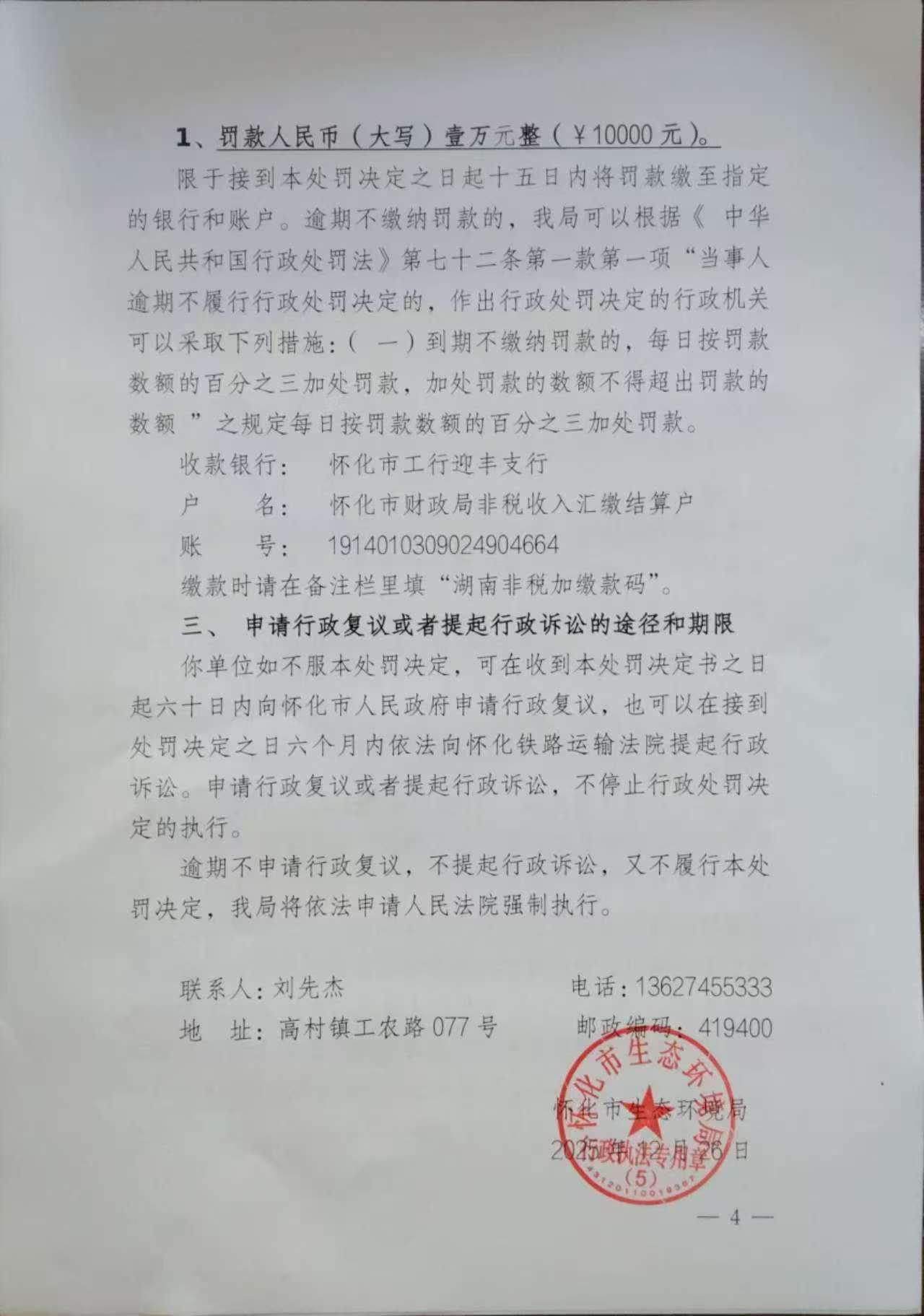 懷化市生態環境局行政處罰決定書 懷環麻罰〔2025〕09號