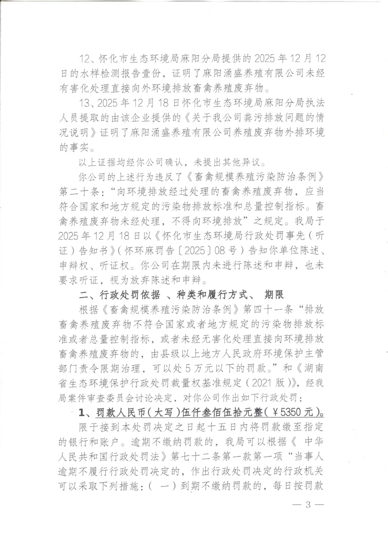 懷化市生態環境局行政處罰決定書 懷環麻罰〔2025〕08號