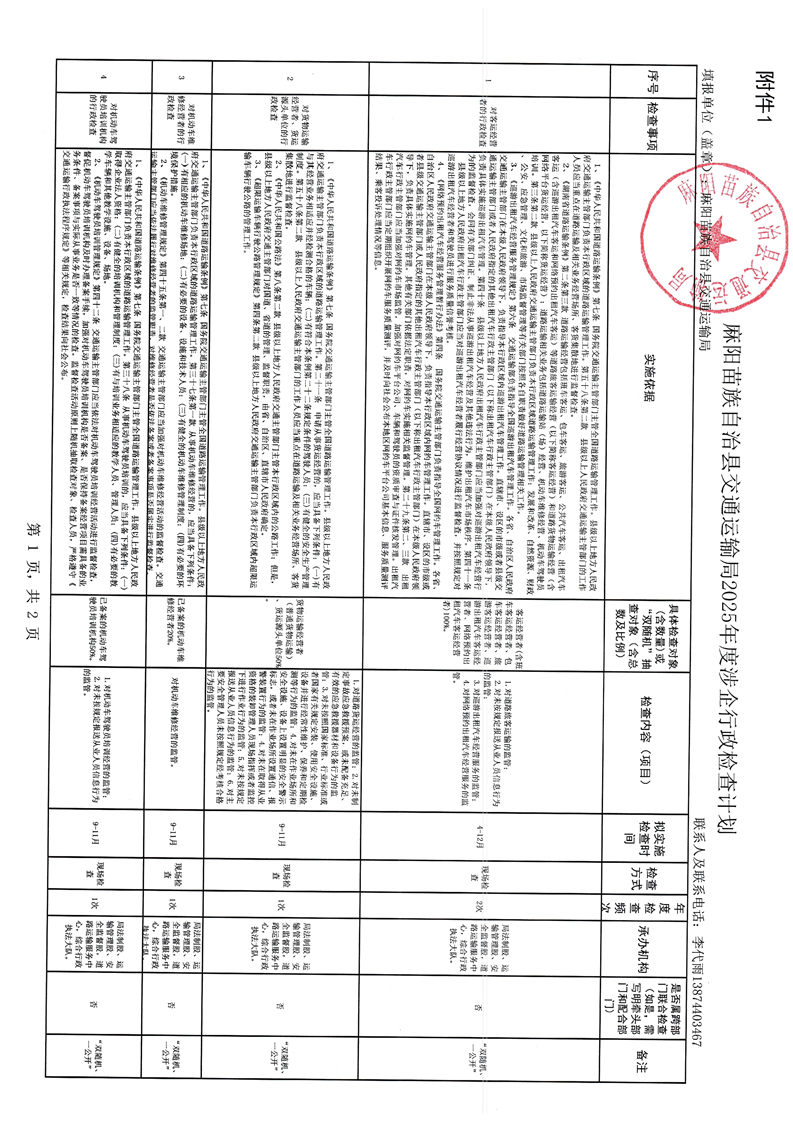 麻陽苗族自治縣交通運輸局2025年度涉企行政檢查計劃
