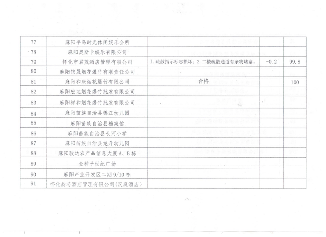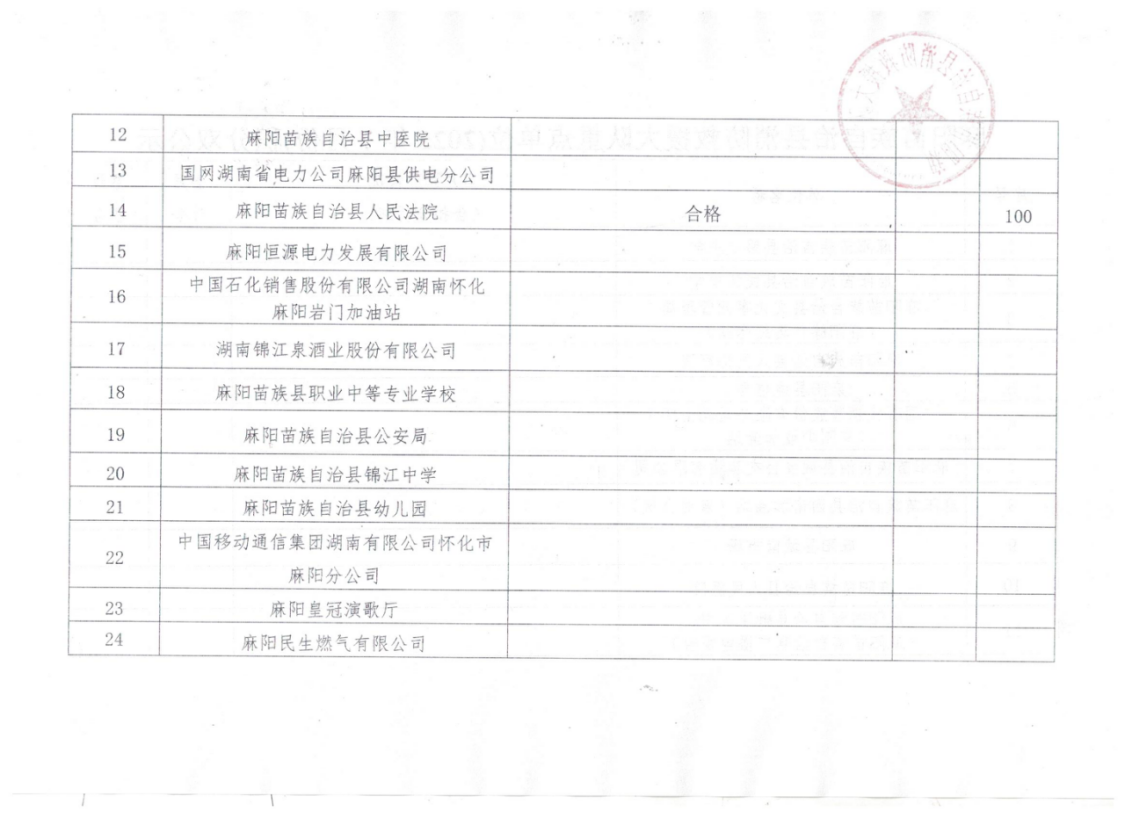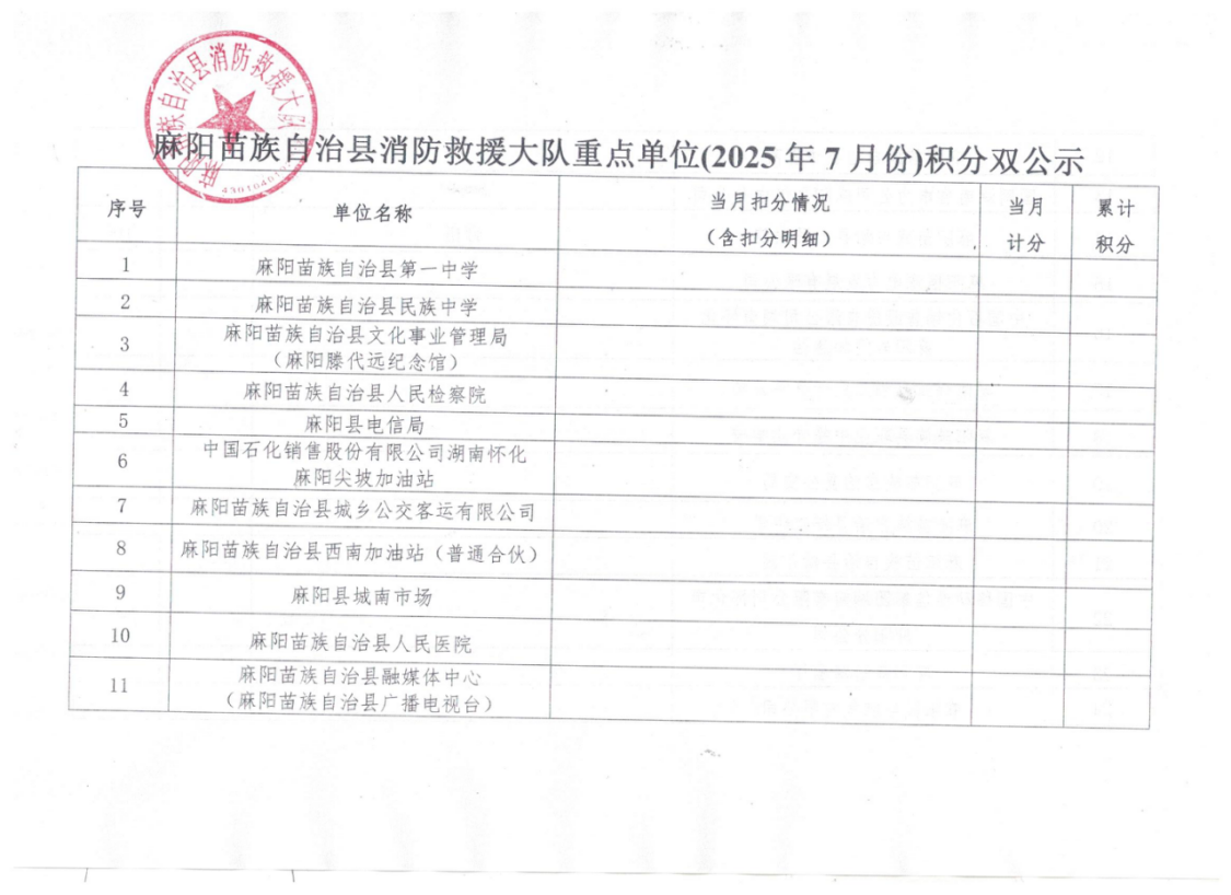 麻陽苗族自治縣消防救援大隊重點單位(2025年7月份)積分雙公示