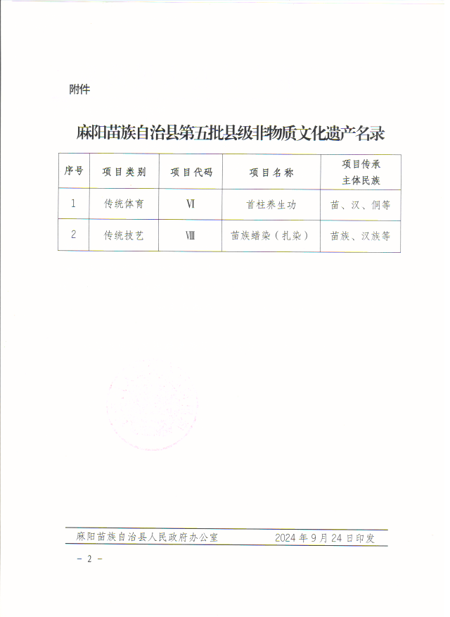 麻陽苗族自治縣人民政府關於公布第五批縣級非物質文化遺產名錄的通知 麻陽苗族自治縣人民政府 https://www.zwgsc.com 發布時間: 2024-09-26 10:09 【字體:大 小】 分享到 來源:麻陽苗族自治縣人民政府辦公室 作者:
