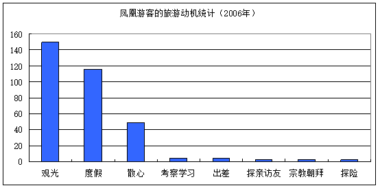 到訪鳳凰的主要旅遊動機是觀光和度假,鳳凰遊客的度假和觀光動機的數量差異不大,這體現出遊客群體具有較強的度假需求,這為麻陽溫泉度假產品的開發提供了良好機遇。