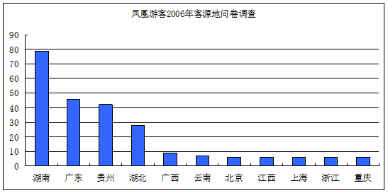 第二個層次是與我國傳統的旅遊客源地相吻合,即以廣東為主的珠江三角洲、北京和長江三角洲客源市場,這部分市場也存在一定的分化,其中廣東省遊客已經成為鳳凰遊客量僅次於湖南的第二大市場,但北京、上海等市場尚待進一步開發。