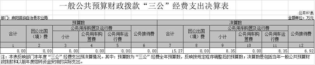 七、一般公共預算財政撥款“三公”經費支出決算表
