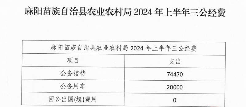 麻陽苗族自治縣農業農村局2024年上半年“三公”經費