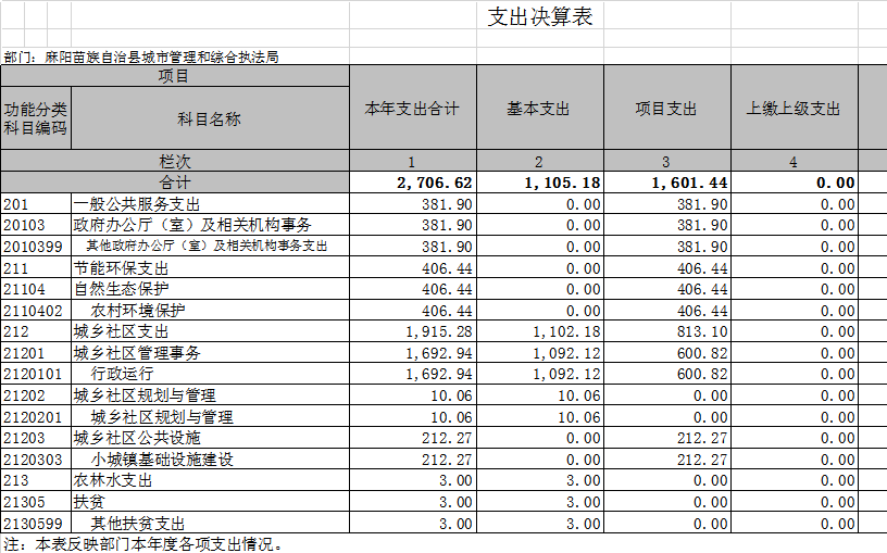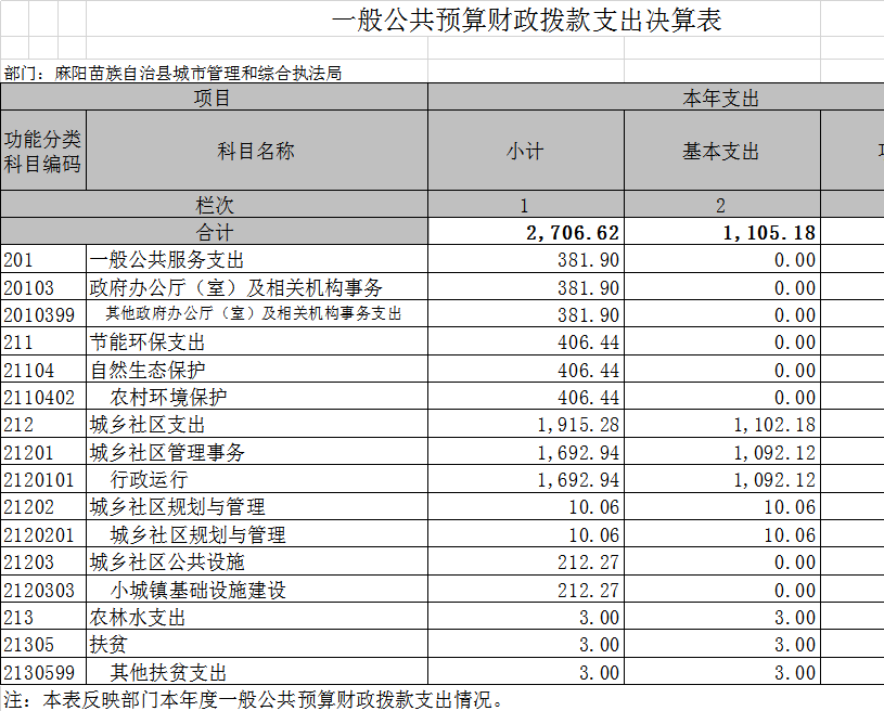(二)決算單位構成。2019年部門決算匯總公開單位構成包括:麻陽縣城市管理和綜合執法局本級。