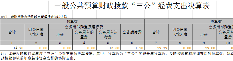 “三公”經費財政撥款支出預算為14.7萬元,支出決算為29.79萬元,其中: