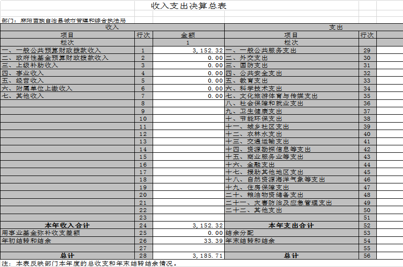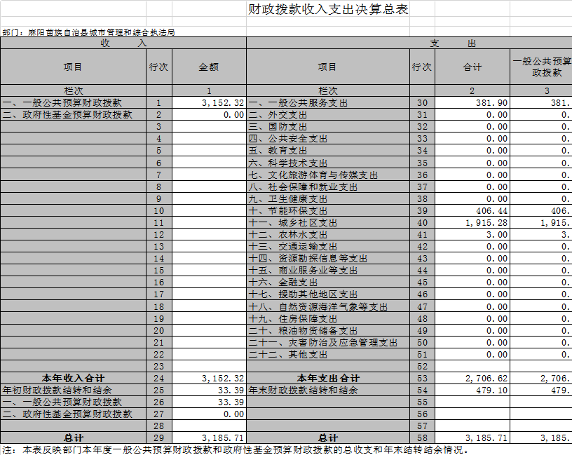2019年度麻陽縣城市管理和綜合執法局部門決算