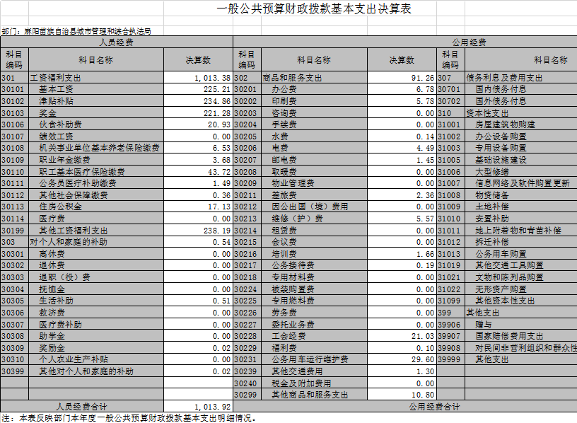 2019年度財政撥款基本支出1105.18萬元,其中:人員經費1013.92萬元,占基本支出的92%,主要包括基本工資、津貼補貼、獎金、夥食補助費;公用經費91.26萬元,占基本支出的8%,主要包括辦公費、印刷費、公務用車運行維護費。