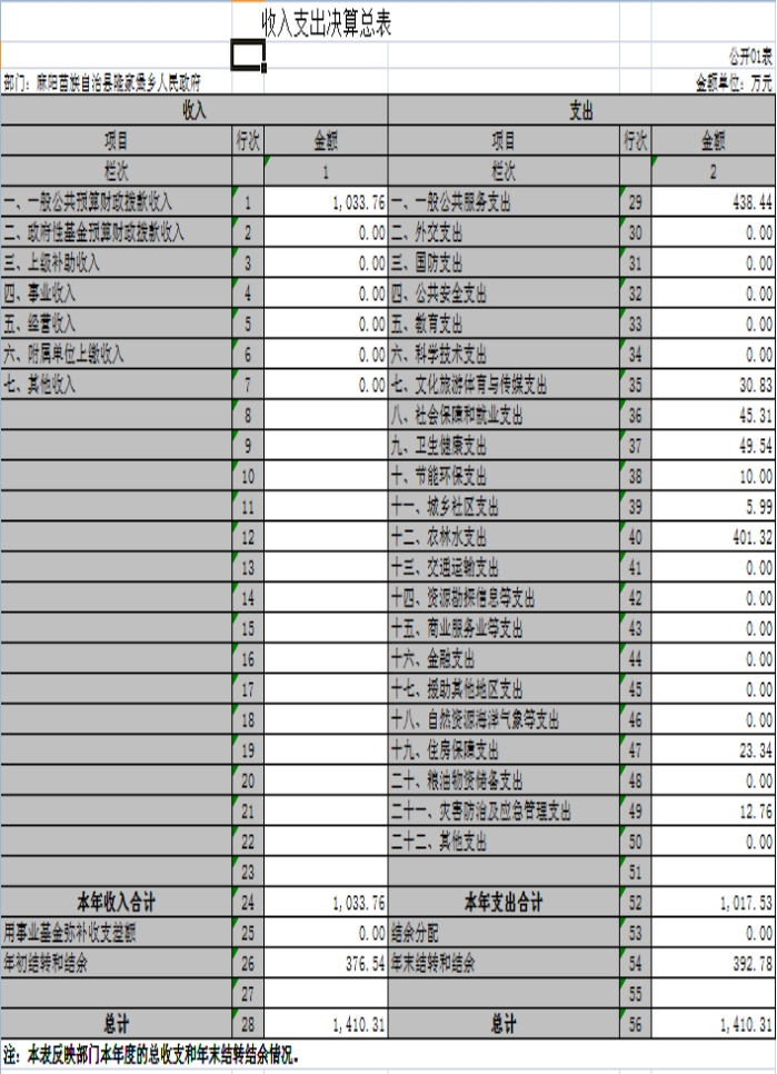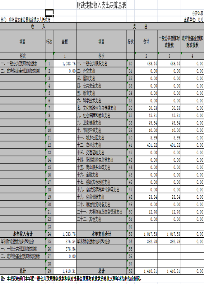 2019年度麻陽苗族自治縣隆家堡鄉人民政府部門決算公開