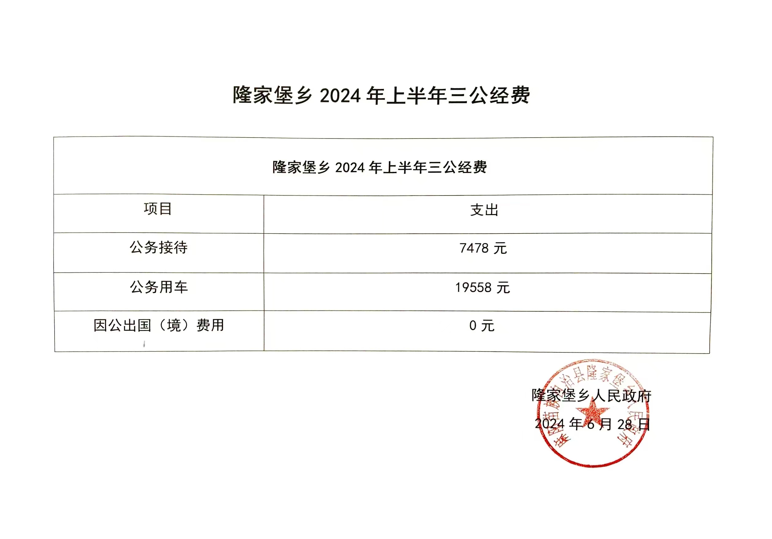 麻陽苗族自治縣隆家堡鄉2024年上半年“三公”經費