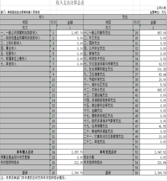 2019年度麻陽苗族自治縣錦和鎮人民政府部門決算公開