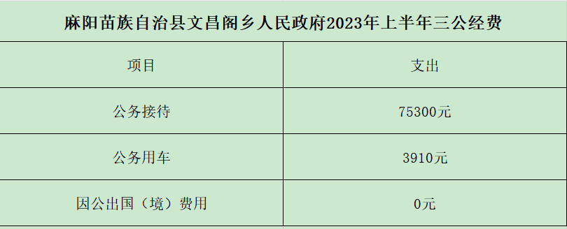 麻陽苗族自治縣文昌閣鄉人民政府2023年上半年“三公”經費 麻陽苗族自治縣人民政府 https://www.zwgsc.com 發布時間: 2023-07-10 15:48 【字體:大 小】 分享到 來源:麻陽縣文昌閣鄉 作者: