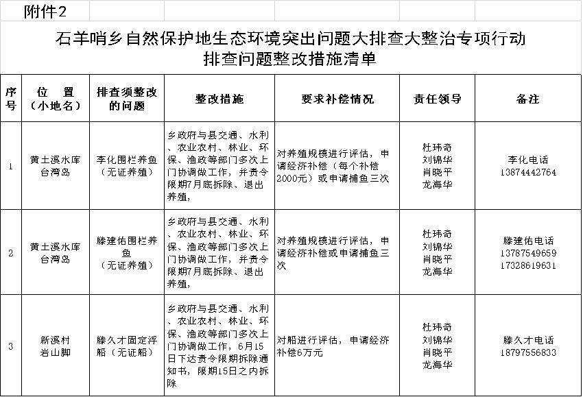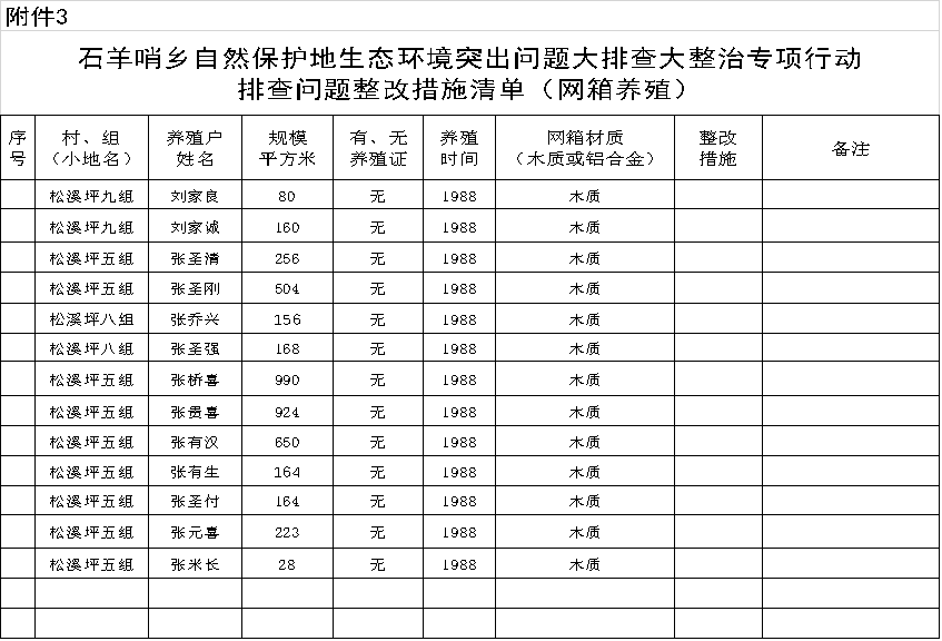 3.石羊哨鄉自然保護地生態環境突出問題大排查大整治專項行動排查問題整改措施清單(網箱養殖)