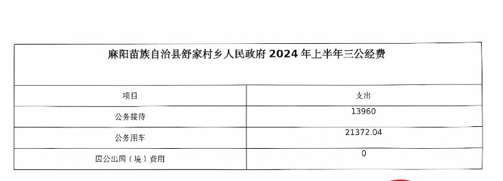 麻陽苗族自治縣舒家村鄉人民政府2024年上半年“三公”經費