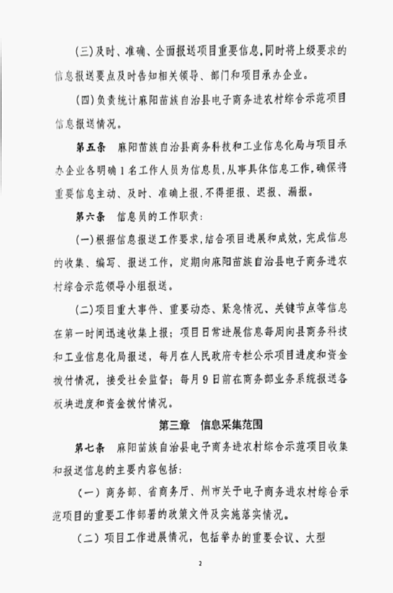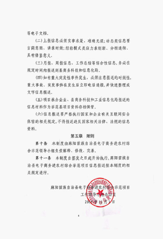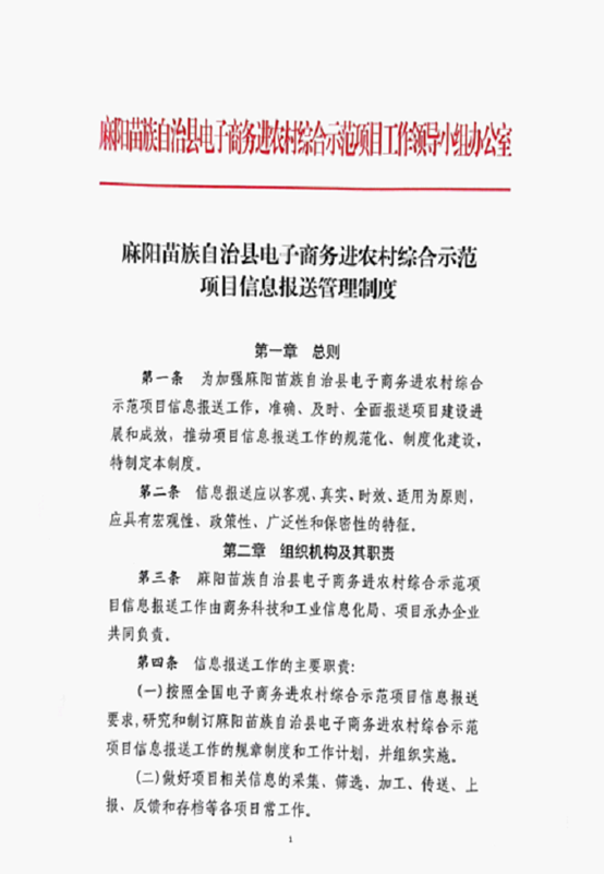 麻陽苗族自治縣電子商務進農村綜合示範項目信息報送管理製度 麻陽苗族自治縣人民政府 https://www.zwgsc.com 發布時間: 2021-11-16 12:04 【字體:大 小】 分享到 來源:麻陽縣商務科技和工業信息化局 作者: