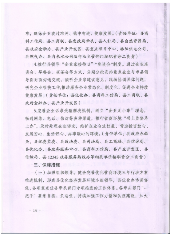 麻陽苗族自治縣人民政府辦公室關於印發《麻陽苗族自治縣優化營商環境三年行動計劃(2022-2024年)》的通知 麻陽苗族自治縣人民政府 https://www.zwgsc.com 發布時間: 2022-06-26 16:59 【字體:大 小】 分享到 來源:麻陽縣政府辦 作者: