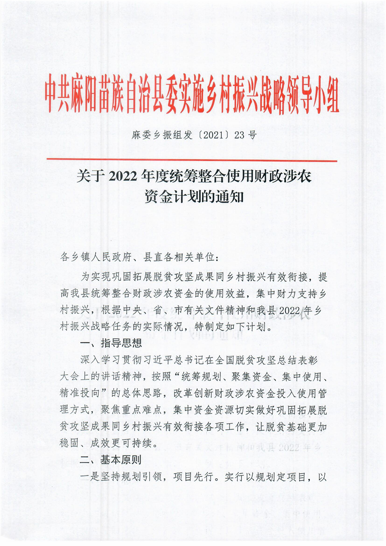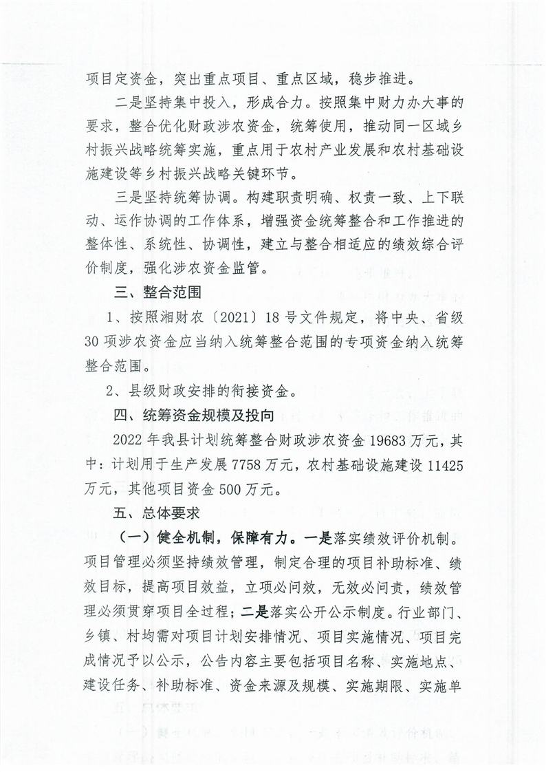 關於2022年度統籌整合使用財政涉農資金計劃的通知