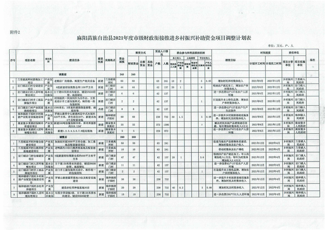關於調整2021年度省、市級財政銜接推進鄉村振興補助資金項目計劃的批複