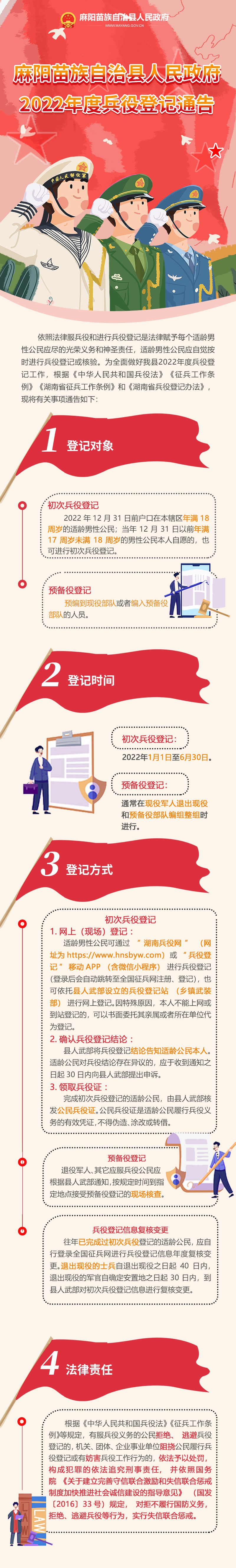 圖解:麻陽苗族自治縣人民政府2022年度兵役登記通告 麻陽苗族自治縣人民政府 https://www.zwgsc.com 發布時間: 2022-02-20 09:26 【字體:大 小】 相關閱讀 關於《麻陽苗族自治縣人民政府2022年度 兵役登記通告》的製定說明 音頻解讀:關於《麻陽苗族自治縣人民政府2022年度 兵役登記通告》的製定說明 麻陽苗族自治縣人民政府2022年度兵役登記通告 分享到 來源:麻陽縣政務服務中心 作者: