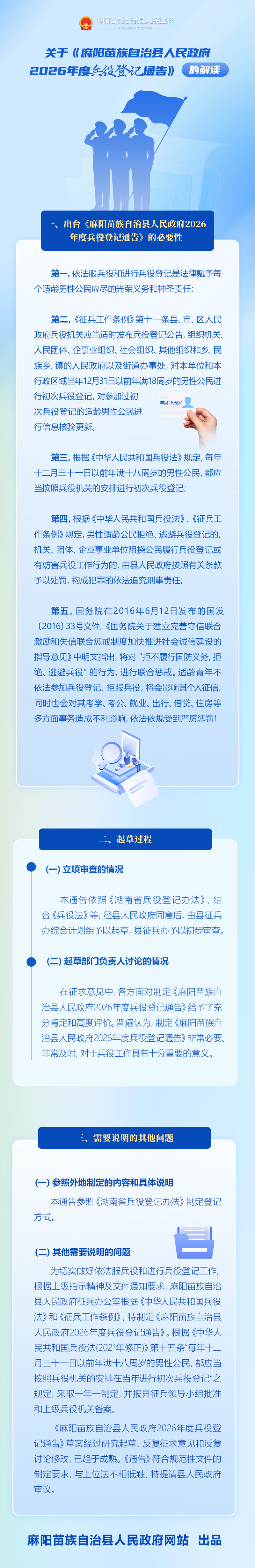 圖解:關於《麻陽苗族自治縣人民政府2026年度兵役登記通告》的解讀 麻陽苗族自治縣人民政府 https://www.zwgsc.com 發布時間: 2026-01-02 09:44 【字體:大 小】 相關閱讀 展開 麻陽苗族自治縣人民政府2026年度兵役登記通告 關於《麻陽苗族自治縣人民政府2026年度兵役登記通告》的解讀 音頻解讀:關於《麻陽苗族自治縣人民政府2026年度兵役登記通告》的解讀 分享到 來源:麻陽縣政務服務中心 作者:
