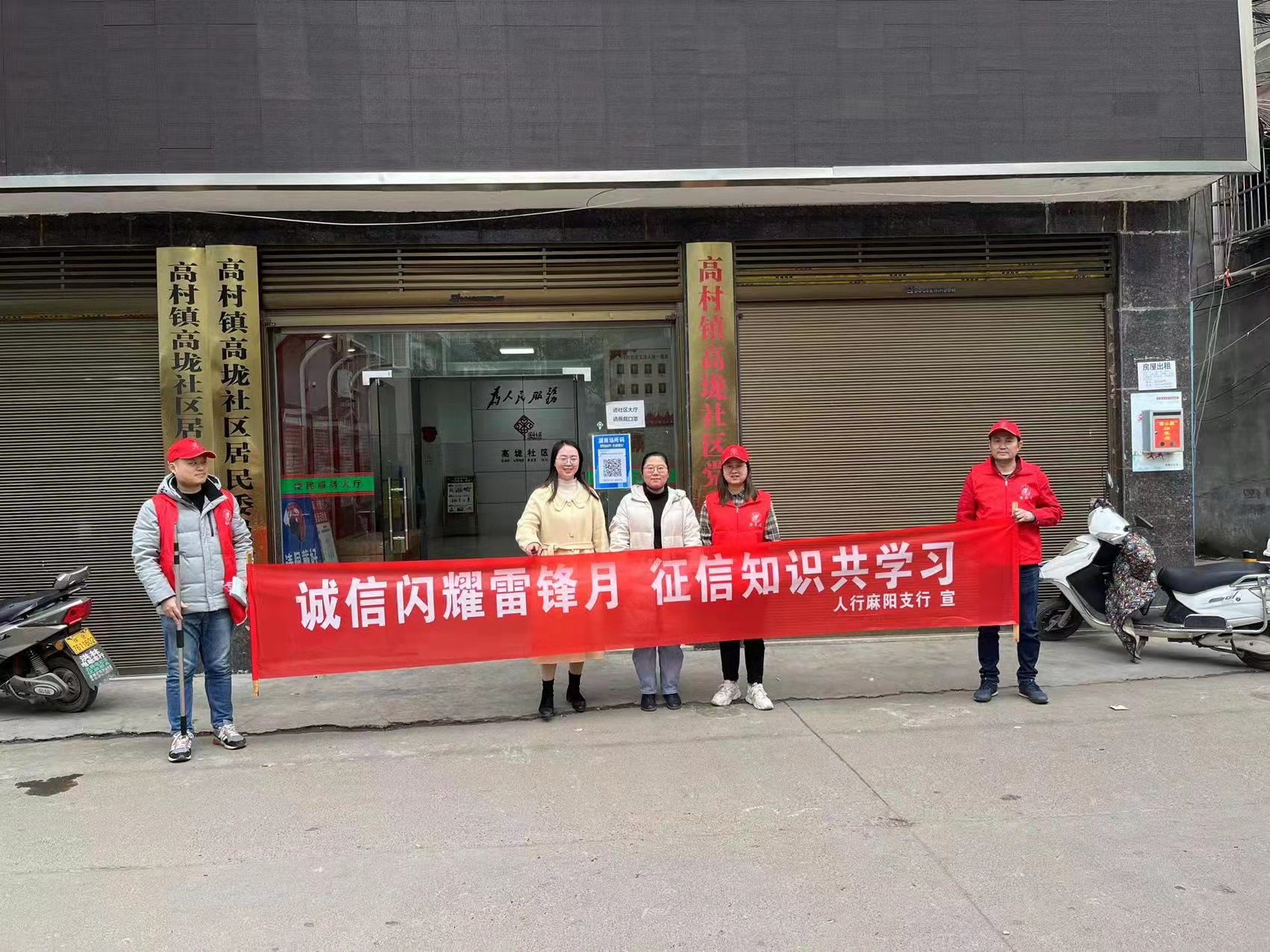 2022年3月4日,人民銀行麻陽支行以“誠信閃耀雷鋒月,征信知識共學習”為主題開展了弘揚雷鋒精神,普及征信知識的宣傳活動。