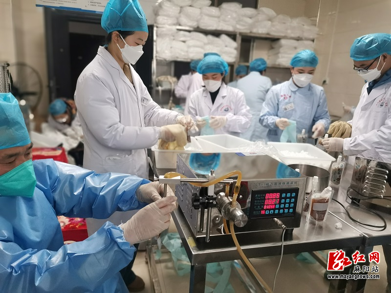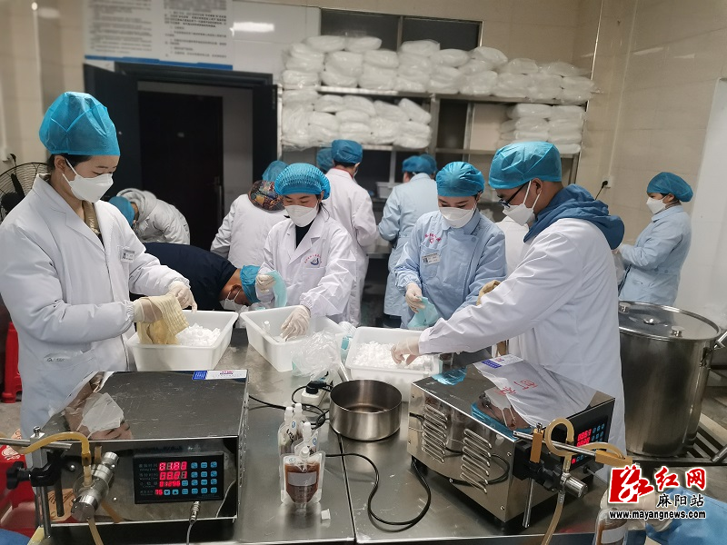 據了解,為應對此輪新冠病毒感染高峰,麻陽人民醫院製劑室加班加點、開足馬力精心熬製中藥湯劑和生產製劑,助力全縣疫情防控工作。為解決人員不足的問題,還向社會招募了10名誌願者,補充抗疫力量。近段時間來,煎藥房裏雲霧氤氳、藥香四溢,工作人員嚴格按步驟煎煮、包裝、檢查密封性、分裝等,忙碌不停,12月份,代煎中藥9800人次。製劑生產方麵,利咽清熱顆粒12月生產了7批(正常全年生產約8批),每批產量2000盒;止咳合劑生產了3批(正常全年生產約4批),每批產量4000瓶;蒲藍消炎膠囊生產了4批(正常全年生產約10批),每批產量4200盒,12月份的藥劑生產量較正常情況翻了5-10倍。