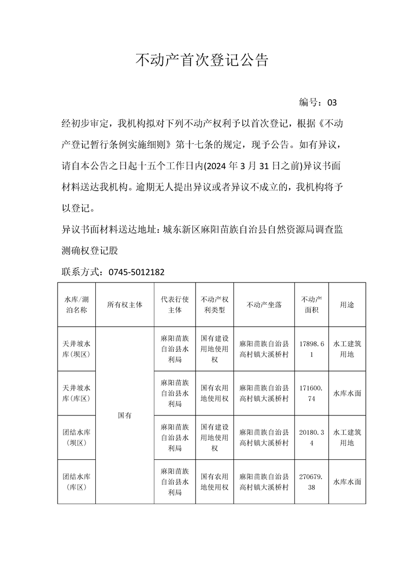 麻陽苗族自治縣自然資源統一確權登記不動產首次登記公示公告(第三批次)