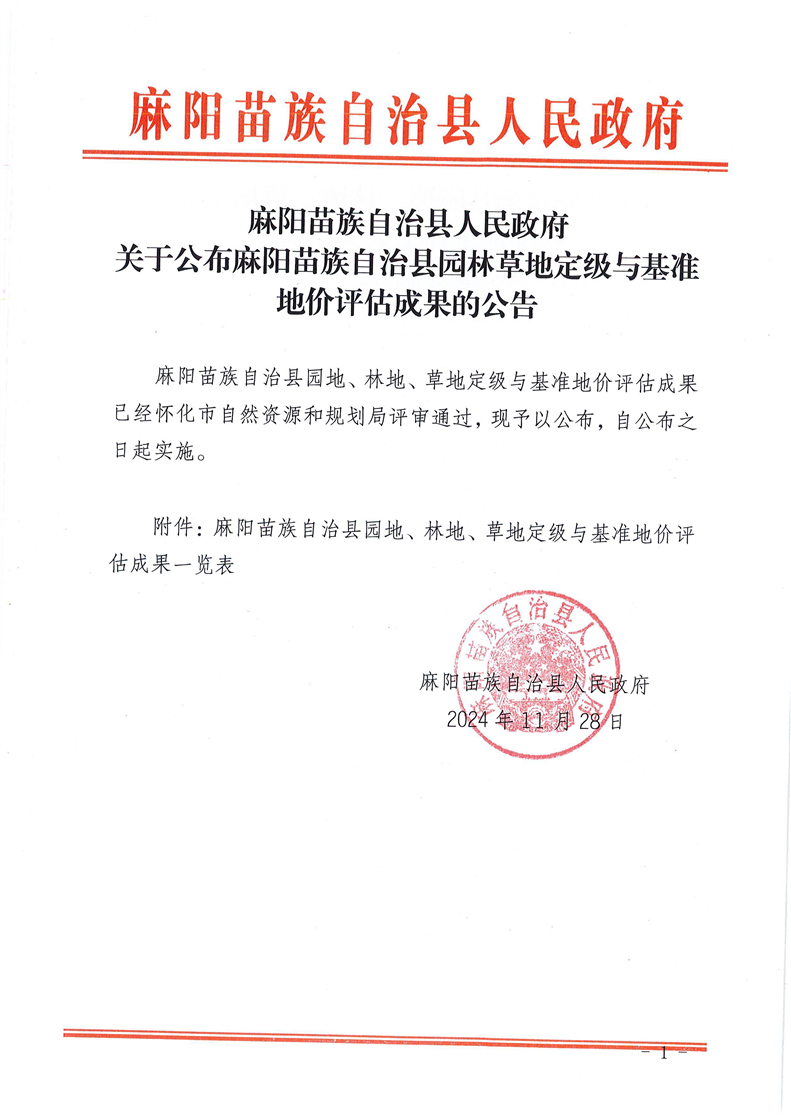 麻陽苗族自治縣人民政府關於公布麻陽苗族自治縣園林草地定級與基準地價評估成果的公告 麻陽苗族自治縣人民政府 https://www.zwgsc.com 發布時間: 2024-11-29 09:28 【字體:大 小】 分享到 來源:麻陽縣自然資源局 作者: